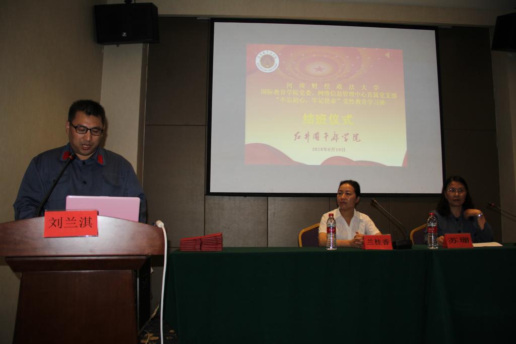 张晓静作为学员代表发言,网络信息管理中心直属党支部书记苏珊对本次培训的圆满举