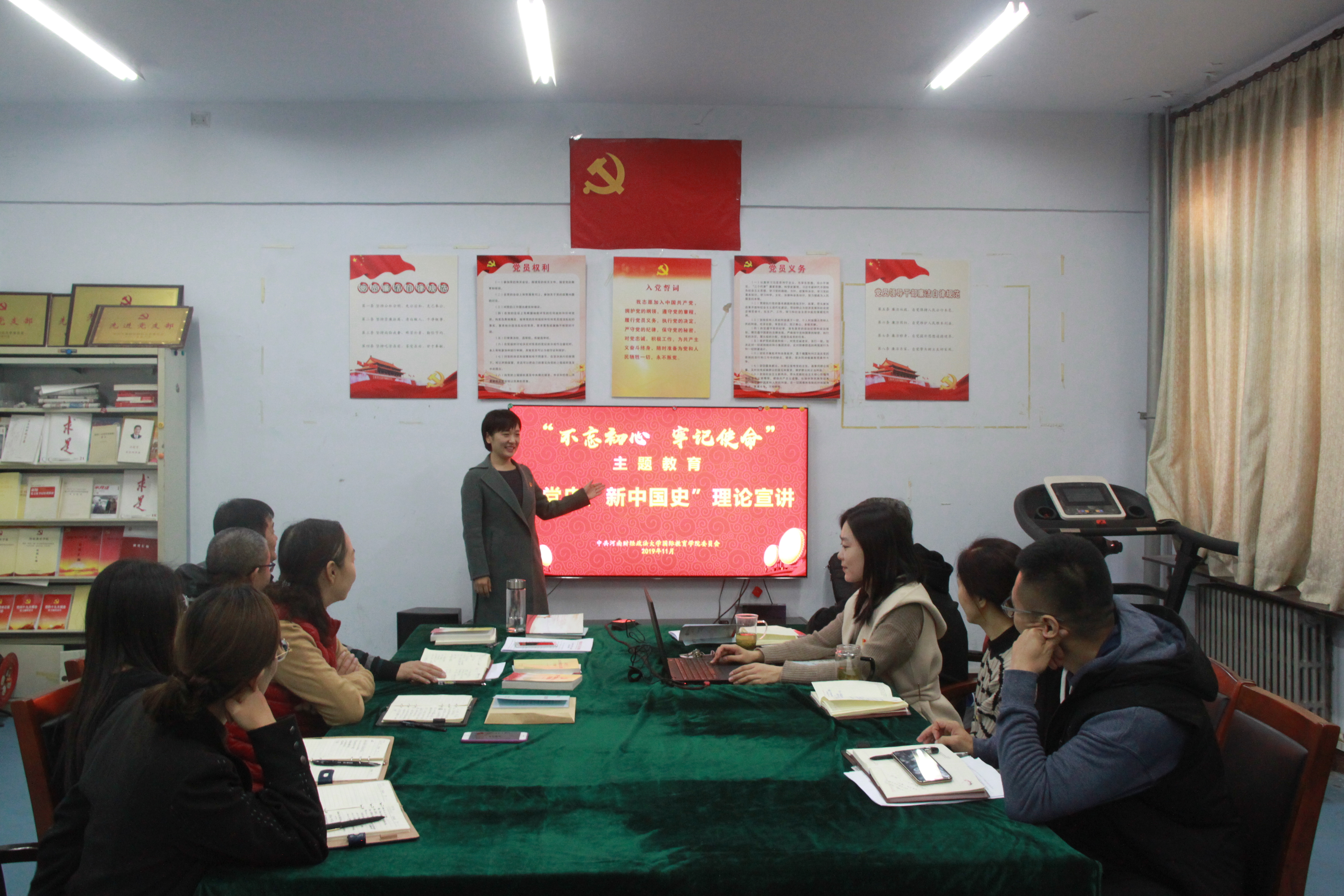 11月20 日下午三点,谈球吧在文北校区二号楼106党员之家开展“新中国史”宣讲,学院全体教职工参加。作为谈球吧登录入口“党史、新中国史”宣讲团的讲师,张晓静、张熙炜分别为学院教职工带来“砥砺奋进七十载,初心不改再出发”以及“峥嵘岁月七十载,牢记使命勇担当”的专题微型党课。