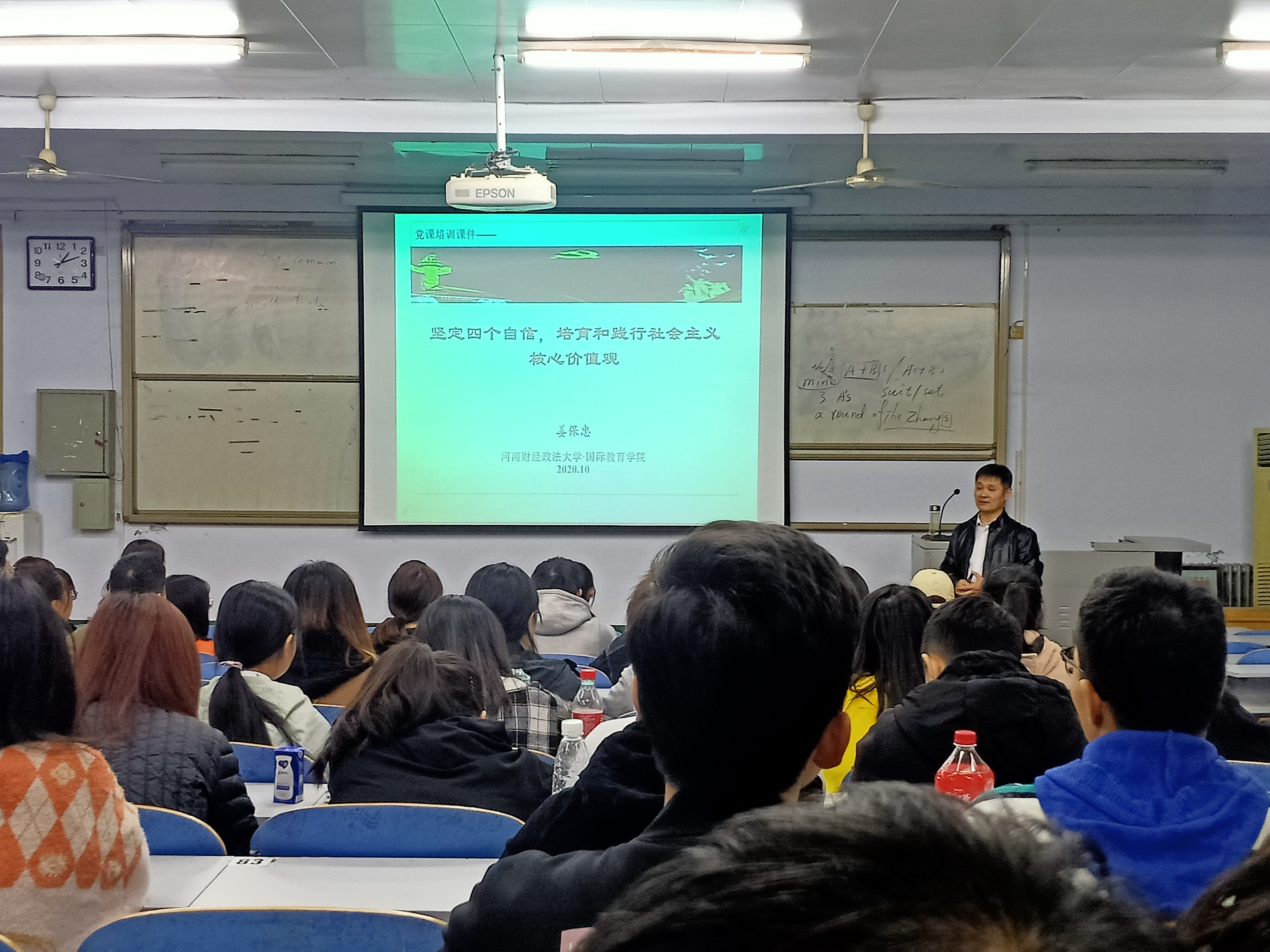 谈球吧员工党支部于2020年10月6日中午13:00在文北校区二东一教室举办书记讲党课主题党日活动。活动邀请公司党委书记姜保忠教授作专题党课,党校第二十期入党积极分子培训班学员90人聆听了本次党课。