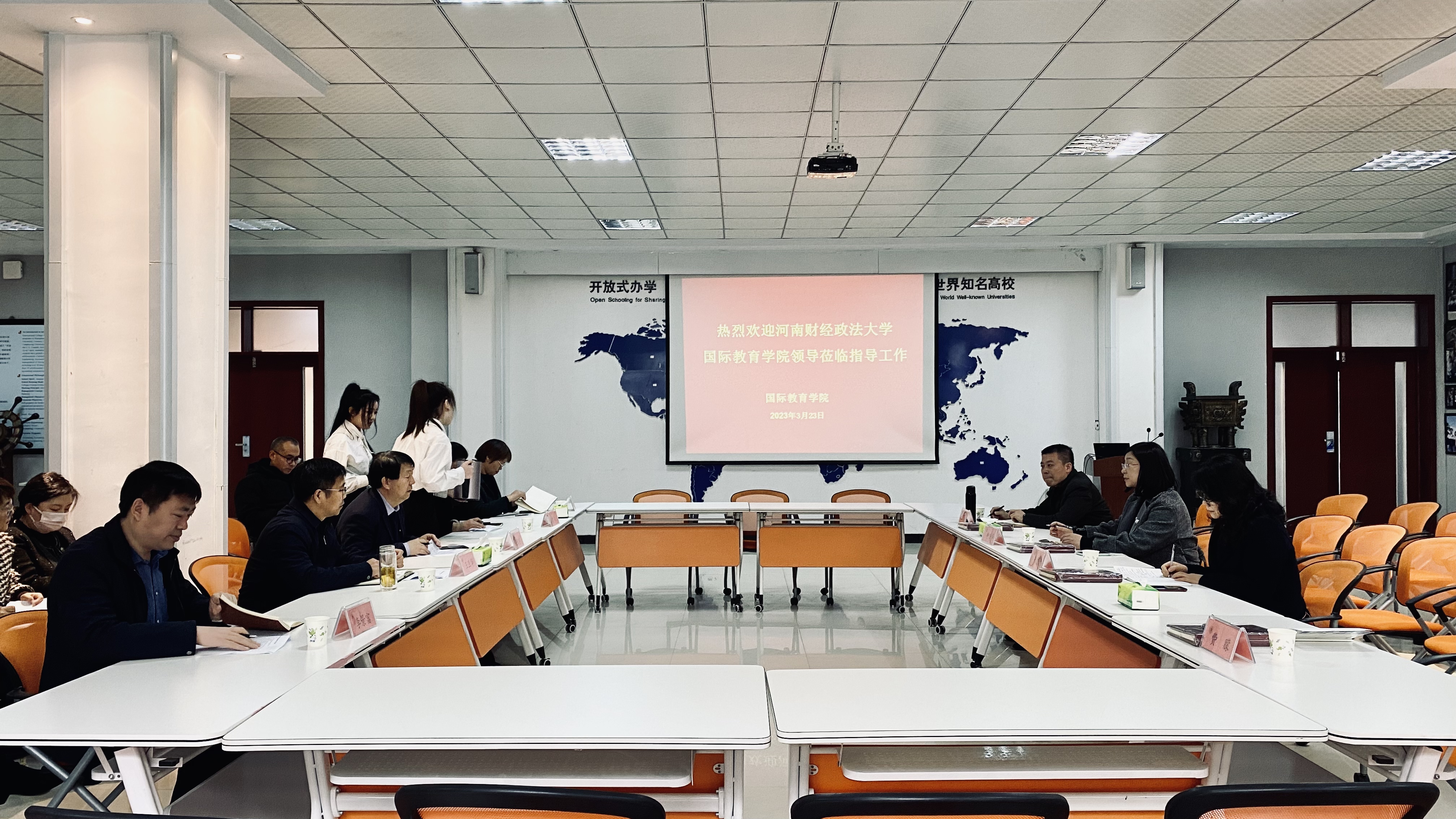 2023年3月23日上午,谈球吧经理申香华,副经理朱爱清、党委副书记王帅、辅导员费朦到黄淮学院谈球吧调研交流,并与黄淮学院谈球吧班子成员举行调研座谈会。